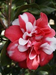 The fully double peony form flowers are bright red to deep red and sometimes splashed with white variegation in different patterns on the petals. Camellia japonica governor mouton. The size and spread of this camellia and its evergreen foliage make it perfect for a unique privacy screen. This shrub does well in partial sun and full shade and it grows to a maximum height of fifteen feet tall and ten feet wide.
